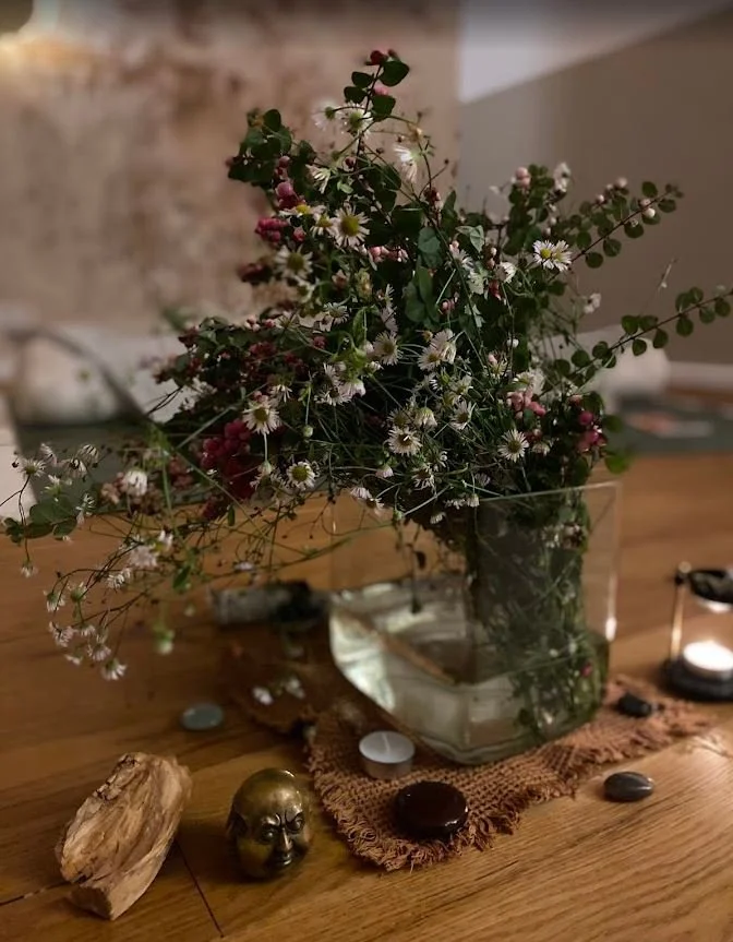 Es war ein ganzes Wochenende voller Geschenke: köstliches, liebevoll zubereitetes Essen, wunderschöne Musik, wohltuende Düfte, ein warm gestalteter Raum, sanfte Dehnungen, kraftvolle Atemreisen, tiefgehende Gedankenimpulse… ein echtes Blumenbouquet an kleinen und großen Momenten der Verbindung.“